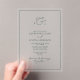 Invitation en acrylique, Taille : 12,7 cm x 17,8 cm, Style : Acrylique transparent, Coins : Rectangle, Impression : Numérique, Épaisseur : Standard (15 mil), Enveloppes : Aucun