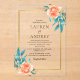 Acrylic Wedding Invitation – Peach Flowers & Elegant Gold Frame