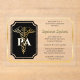 "PA" et un caducée doré sur un panneau de cadre noir à pétoncles sur la gauche avec vos détails sur la droite, le tout entouré d'un cadre à deux pétoncles de couleur or sur un design d'invitation claire arrière - plan graduation qui peut être personnalisée pour les diplômes d'assistant de l'école de médecin. Conception composite par Holiday Hearts Designs (droits réservés).