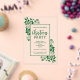 Elegant green foliage borders these clear ACRYLIC party invitations, perfect for a holiday dinner party, a corporate Christmas party, ornament exchange, wedding engagement party and more, just change the wording.