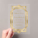 Cette élégante faire-part de mariage d'inspiration vintage présente du texte doré sur un arrière - plan transparent et clair, encadré par un design Art déco vintage géométrique.