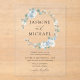 Célébrez votre amour avec nos élégantes invitations de mariage Dusty Blue Floral, avec vos noms encerclés par une belle couronne de roses bleues et blanches poussiéreuses, des hydrangées, et de luxuriants feuilles d'eucalyptus. Conçu contre un arrière - plan en acrylique transparent, ce design d'inspiration nature ajoute une touche romantique et sophistiquée à votre journée spéciale. Parfait pour les mariages du printemps ou de l'été, ce faire-part de mariage floral bleu poussiéreux donnera le ton d'une fête mémorable.