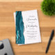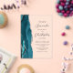 Le bord gauche de cette élégante faire-part de mariage moderne comporte une bordure turquoise en aquarelle ornée d'une parties scintillant en faux argent. Le texte personnalisable combine des polices de script et sans serif en gris charbon sur un arrière - plan clair.
