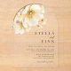 Élégantes invitations rustiques modernes en acrylique présentant des fleurs et des florales aquarelles blanches jaunes dorées, classiques et script.