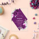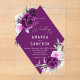 Ces élégantes invitations de mariage allient charme rustique et design géométrique moderne. Imprimées en acrylique clair, elles présentent une forme diamant violet frappante ornée de motifs floraux violets et roux. L'arrière - plan transparent ajoute une touche sophistiquée, ce qui fait que le texte et les éléments floraux semblent flotter. Cette combinaison unique de styles crée une invitation mémorable et élégante.