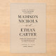 Ce faire-part de mariage élégant et moderne présente un script de calligraphie unique associé à un style élégant. Les couleurs noir et blanc sont parfaites pour tout événement, formel ou décontracté.
