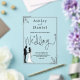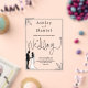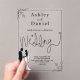 Cet élégant faire-part de mariage acrylique noir et blanc est parfait pour un mariage moderne. Le design simple présente une élégante calligraphie noire, un cadre noir chic et une illustration de mariée et de mariée sur un arrière - plan transparent et clair. La carte d'invitation comprend les détails du mariage au dos au lieu de payer une carte d'enceinte séparée.