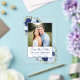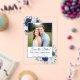 Ces belles cartes acryliques sont une façon spéciale et unique de faire connaître à vos amis et votre famille pour enregistrer la date pour votre prochain mariage. Le design boho chic rustique présente votre photo entourée de roses d'aquarelle peints à la main dans des tons bleu poussiéreux, marine et indigo, ainsi que des sprigs verts sauge d'eucalyptus et de verdure du jardin. Il y a de la place ci-dessous pour vos noms, la date et l'emplacement du mariage. Une belle façon de commencer votre voyage mariage.