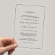 Invitation en acrylique, Taille : 12,7 cm x 17,8 cm, Style : Acrylique transparent, Coins : Arche, Impression : Numérique, Épaisseur : Standard (15 mil), Enveloppes : Aucun
