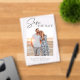 An elegant save the date photo clear acrylic announcement featuring a modern black script font and simple minimalist design. THE SAMPLE PHOTO IS NOT INCLUDED. REPLACE WITH YOUR OWN PHOTO BEFORE ORDERING.