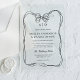 L'Elegant Formal Black & White Bow Monogram Acrrylique Invitations est parfait pour les couples à la recherche d'un raffinement intemporel. Fabriquées à partir d'acrylique élégant, ces invitations présentent un design d'arc noir raffiné associé à un monogramme pour une touche personnalisée. La palette classique de couleurs noir et blanc dégage élégance, tandis que l'acrylique transparent donne une touche moderne. Idéaux pour les mariages haut de gamme, ces invitations communiquent style et formalité, donnant le ton pour une journée mémorable. Le texte personnalisable dans les polices stylisées ajoute une touche haut de gamme unique pour une expérience d'invitation inoubliable.