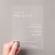 Invitation en acrylique, Taille : 12,7 cm x 17,8 cm, Style : Acrylique transparent, Coins : Arche, Impression : Numérique, Épaisseur : Standard (15 mil), Enveloppes : Aucun