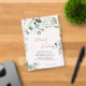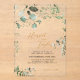 Le design présente une aquarelle verte à eucalyptus avec des éléments de parties scintillant dorée fleurie. En utilisant une police de calligraphie élégante en couleur or pour le nom de la mariée et du marié qui le fait ressortir.