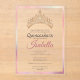 Make a stunning first impression with this modern acrylic Quinceañera invitation, designed with clean typography and a sleek, contemporary style. Crafted to celebrate a fifteenth birthday with elegance and sophistication, this acrylic invitation adds a luxurious touch to any Mis Quince Años celebration. Personalized with the birthday girl’s name and event details, it creates a keepsake invitation guests will remember long after the celebration. Includes a beautiful tiara crown for your princess! Happy birthday! Faux pink foil border.
