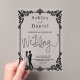 Cet élégant faire-part de mariage acrylique noir et blanc est parfait pour un mariage moderne. Le design simple présente une élégante calligraphie noire, un cadre noir chic et une illustration de mariée et de mariée sur un arrière - plan transparent et clair. La carte d'invitation comprend les détails du mariage au dos au lieu de payer une carte d'enceinte séparée.