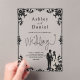 Cet élégant faire-part de mariage acrylique noir et blanc est parfait pour un mariage moderne. Le design simple présente une élégante calligraphie noire, un cadre noir chic et une illustration de mariée et de mariée sur un arrière - plan transparent et clair. La carte d'invitation comprend les détails du mariage au dos au lieu de payer une carte d'enceinte séparée.