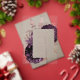 Cette élégante invitation à un mariage présente un bouquet luxuriant et romantique à fleurs violet avec fausse feuille d'or rose et feuillage de parties scintillant. Customisez le texte rose rose dans des polices de style sur un rectangle transparent.