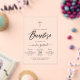 Célébrez un moment sacré avec un style intemporel en utilisant ce script élégant invitación de bautizo imprimé sur acrylique clair. Conçue avec une typographie épurée et minimaliste et une calligraphie de fantaisie, cette invitation mélange magnifiquement tradition et élégance moderne. Parfait pour un bautizo para niño ou niña, cette invitation au baptême espagnol offre un look sophistiqué tout en honorant la signification spirituelle du jour. Que vous planifiez un simple rassemblement ou une grande fête de baptême, cette invitation en acrylique bautizo apporte une touche raffinée à votre événement. Conçu en espagnol avec des détails soignés et écrits à la main, il est un souvenir précieux pour les familles à la recherche d’une invitation moderne et classique au baptême. Idéale pour ceux qui apprécient le design élégant et confus, cette invitation fait une belle première impression.