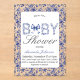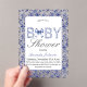 Invitations En Acrylique Elégant Toile Bleue de Jouy et Baby shower Bow