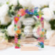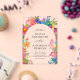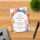Le design de la faire-part de mariage est élégant et dynamique, avec une bordure florale d'aquarelle joyeuse qui ajoute chaleur et charme tout en encadrant le texte magnifiquement. La typographie combine une police serif sophistiquée pour les noms avec un script délicat pour "And", créant un intérêt visuel. L'alignement central du texte assure un aspect propre et formel, ce qui facilite la lecture des détails. Les tons pastel et floral clair complètent le thème romantique, ajoutant une touche festive et vivante.