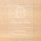 Annoncez votre prochain mariage dans une élégance intemporelle avec notre élégante Chinoiserie Save the Date. Ce design sophistiqué présente vos initiales monographiques entourées d'une belle crête de chinoiserie blanche et de motifs baroques, dressés contre un arrière - plan acrylique transparent ou dépoli. "Save the Date" est présenté dans un gracieux script de calligraphie blanche, avec vos détails mariages élégamment affichés ci-dessous. Parfait pour les couples à la recherche d'une façon classique et raffinée de partager leur journée spéciale avec leurs proches.