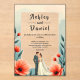 Cette élégante invitation à l'acrylique mariage floral aquarelle est parfaite pour un mariage moderne. Le design romantique présente un cadre floral aquarelle élégant avec une illustration de mariée et de mariée et de calligraphie noire sur un arrière - plan blanc.