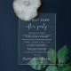 Élégant elopement ou faire-part de mariage privé et invitation de mariage avec "Happily Ever After Party" dans une simple typographie blanche et un script blanc chic avec des swashes, votre message et invitation personnalisés et vos noms dans un script signature.