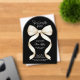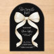 Elégant Black Bow She's Tying the Knot Fête des mariées acrylique Invitation. Charme féminin doux belle aquarelle peinte sable blanc taupe arc avec des bords de ruban courbés contre l'arrière - plan noir. Écriture du script de calligraphie, faisons savoir à tout le monde qu'elle noue le noeud. Invitations amis et famille à une douche nuptiale à coquette girly enchantée avec des arcs à foison! Joli motif à l'arrière de l'invitation. Les modèles sont faciles à éditer avec tous les détails de la douche nuptiale.