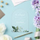 Ces invitations acryliques à mariage de montagne blanc d'eucalyptus vert émeraude sont parfaites pour un mariage boho. Le design élégant et rustique présente des feuilles d'aquarelle vert foncé moody et des eucalyptus aux tons bohèmes modernes.