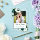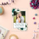 Ces belles cartes acryliques sont une façon spéciale et unique de faire connaître à vos amis et votre famille pour enregistrer la date pour votre prochain mariage. Le design boho chic rustique présente votre photo entourée de roses d'aquarelle peints à la main dans les tons émeraude, menthe et vert sauge, ainsi que des sprigs d'eucalyptus et de verdure du jardin. Il y a de la place ci-dessous pour vos noms, la date et l'emplacement du mariage. Une belle façon de commencer votre voyage mariage.