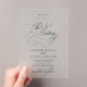 Invitation en acrylique, Taille : 12,7 cm x 17,8 cm, Style : Acrylique transparent, Coins : Rectangle, Impression : Numérique, Épaisseur : Standard (15 mil), Enveloppes : Aucun
