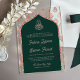 Invitations En Acrylique Emerald Green Rose Gold Damask Arch Mariage musulm