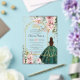 Personnalisez cette élégante invitation acrylique rose pâle Quinceañera / Sweet 16 Ans invitation à l'acrylique facilement et rapidement. Cliquez simplement sur le bouton customiser pour modifier les textes, modifier les polices et les couleurs des polices. Avec de belles roses roses rousses, de la verdure et une fille habillée d'une robe de bal vert émeraude. Objets correspondants disponibles en magasin. c) Somerset Fine Paperie