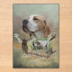 A classic upland hunting scene featuring an English Pointer on point during a pheasant hunt. Perfect for hunters, bird dog lovers, and outdoor enthusiasts who appreciate traditional sporting dog art and field hunting moments.
