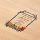 Invitations uniques de mariage sur le thème du steampunk argent et cuivre. Lances métalliques rustiques et oranges Fleurs de couleur automne avec une bordure métallique plus légère sur cette faire-part de mariage acrylique en forme d'arc transparent.