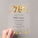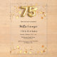 Une invitation moderne, élégante et glamour pour une fête de 75e anniversaire. Un fond clair et transparent avec des étoiles dorées factices. Le nom est écrit avec un style de lettrage manuscrit moderne. Personnalisez et ajoutez les détails de votre fête. Le numéro 75 est écrit avec une police de caractères de style ballon, script.