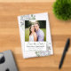 Ces belles cartes acryliques sont une façon spéciale et unique de faire connaître à vos amis et votre famille pour enregistrer la date pour votre prochain mariage. Le design boho chic rustique présente votre photo entourée de sprigs d'aquarelle peints à la main de feuilles d'eucalyptus et de fleurs de lavande dans les tons vert sauge et violet clair. Il y a de la place ci-dessous pour vos noms, la date et l'emplacement du mariage. Une belle façon de commencer votre voyage mariage.