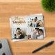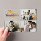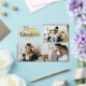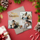 Send holiday cheer with a stylish Merry Christmas Photo Collage Card! Featuring a chic retro script in golden tones and a sleek black background, this card beautifully showcases favorite family photos. It’s the perfect blend of classic elegance and modern vibes, making it a timeless keepsake for loved ones. Personalize with photos and a family name to create a one-of-a-kind holiday greeting!