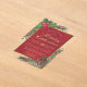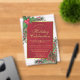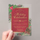 Invitation vos invités à célébrer les fêtes avec ces belles invitations acryliques. Le design présente du texte doré sur un arrière - plan rouge cramoisi marbré dans un cadre en faux film doré. La bordure est transparente et décorée avec des feuilles de houx peints à la main, des baies, des pinecones et des branches de pin. Traditionnelles, festives et élégantes, ces invitations feront une impression ! Parfait pour un Noël ou une fête non spécifique.