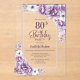 Invitation vos amis et proches avec cette invitation à la fête du 80e anniversaire rose acrylique. La zone de texte personnalisable de ce modèle d'invitation vous permet d'inclure sans effort tous les détails nécessaires à votre fête d'anniversaire, y compris la date, l'heure, le lieu et les informations RSVP.