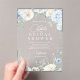 Une invitation unique à la douche nuptiale sur acrylique clair caractéristiques des hydrangées et roses bleu et blanc poussiéreux.