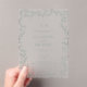 Invitation en acrylique, Taille : 12,7 cm x 17,8 cm, Style : Acrylique transparent, Coins : Rectangle, Impression : Numérique, Épaisseur : Standard (15 mil), Enveloppes : Aucun