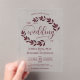 Invitations En Acrylique Feuille Bourgogne Élégant Mariage de script modern
