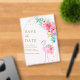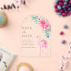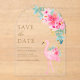 Éblouissez vos invités avec cet élégant enregistrer la date avec un flamand mignon et de belles fleurs d'aquarelle rose. Ajoutez simplement les détails de votre événement sur ce modèle facile à utiliser pour en faire une carte unique de sauvegarde de la date.