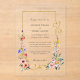 Bordure dorée gracieuse avec des parchemins élégants agrémentés de fleurs sauvages pastel boho chic romantique en bleu pâle, rose et jaune. Cette charmante collection est le complément parfait à votre mariage sur le thème du printemps, de l'été ou du jardin.