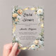Un arrière - plan clair et transparent. Décoré de fleurs blanches et jaunes et d'un ruban doré. Personnalisez et ajoutez le nom de l'Épouse à être et les détails.