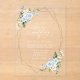 Invitations amis et famille dans le style et donner le ton pour votre journée spéciale avec ce faire-part de mariage charmant. Le design présente des fleurs d'aquarelle bleu et blanc, de la verdure, des confettis dorés et un cadre doré.