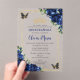Invitations En Acrylique Fleurs bleues royales Floral Quinceañera Papillons