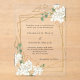 Pour un mariage d'hiver classique. Un arrière - plan clair et transparent décoré de fleurs blanches et d'un cadre géométrique en faux or. Personnalisez et ajoutez vos noms et détails.