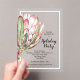 A beautiful hand painted watercolor pink protea floral blossom accents this clear ACRYLIC invitation, a fabulous change from traditional Christmas holiday party invitations. Perfect for a tropical touch to your celebration. MATCHING items in our store.